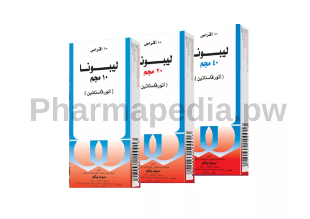 ليبونا اقراص Lipona tabs دواء اتورفاستاتين Atorvastatin لعلاج ارتفاع الدهون الضارة والكوليسترول في الدم بتركيز 10 و 20 مجم و 40 مجم