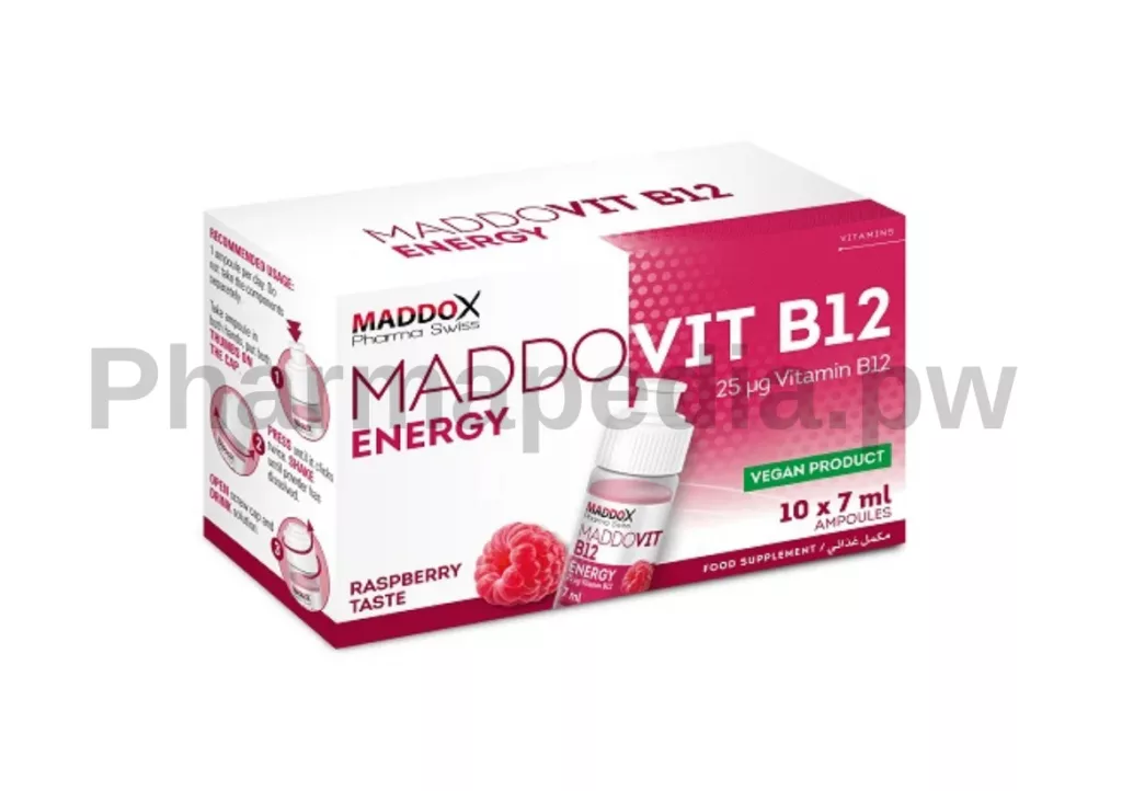 مادوفيت ب12 امبول شراب Maddovit B12 مكمل غذائي يحتوي علي فيتامين ب12 بتركيز 25 ميكروجرام ، يستخدم لعلاج نقص فيتامين ب12