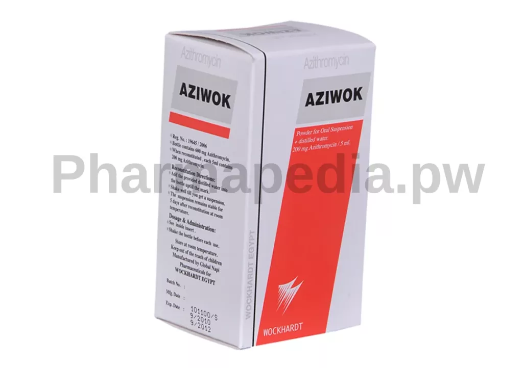 ازيوك شراب للأطفال و الرضع Aziwok suspension هو دواء مضاد حيوي المادة الفعالة أزيثرومايسين azithromycin بتركيز 200 مجم/5 مللي