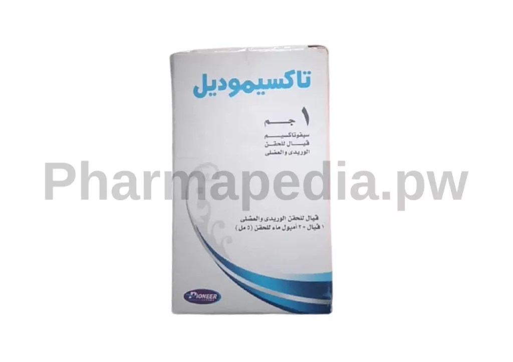 دواء تاكسيموديل Taximodel هو مضاد حيوي واسع المجال حقن في العضل او الوريد يستخدم في علاج العدوي البكتيرية تركيزات 500 مجم او 1 جم او 2 جم
